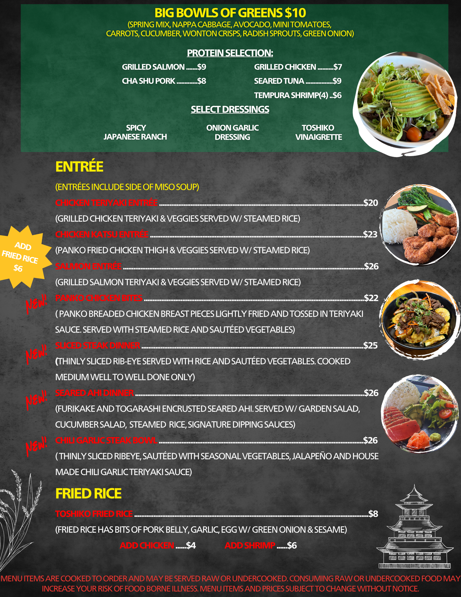 NEW MENU !!!!! CLICK BELOW TO ONLINE ORDER